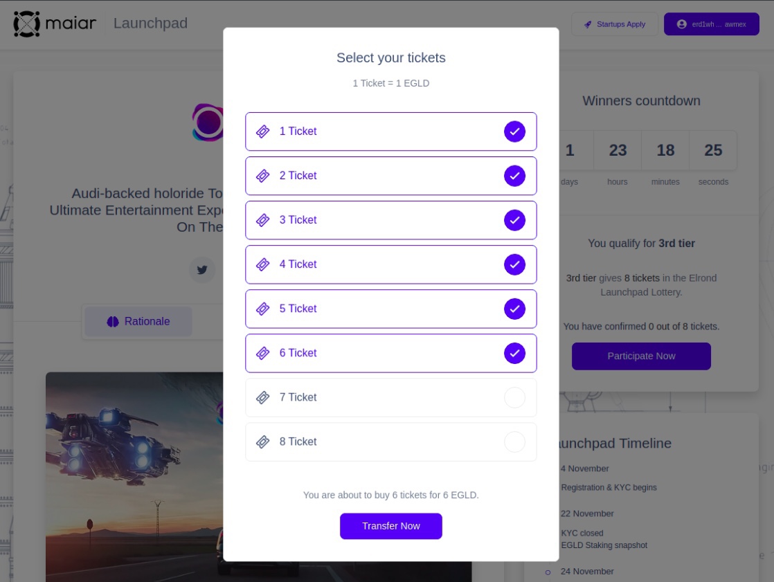 - Un système à plusieurs niveaux est en place, basé sur la quantité d’EGLD jalonnée. Plus d’EGLD jalonné, plus de billets disponibles à l’achat