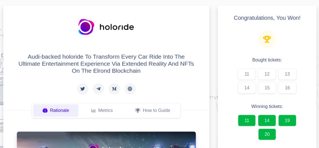 - Les billets gagnants permettent à leur détenteur de réclamer 5000 jetons RIDE. Les billets non gagnants permettent à leur détenteur de réclamer l’EGLD dépensée pour eux. Plus de billets signifie plus de chances de gagner