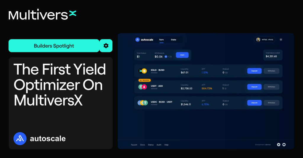Disponible sur le devnet MultiversX : https://devnet.autoscale.finance/