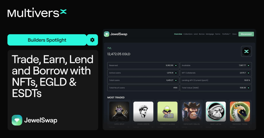 JewelSwap a réussi à déployer plusieurs produits sur MultiversX dans un laps de temps relativement court, amplifiant l’utilité et la valeur NFT et élargissant les opportunités DeFi disponibles sur notre réseau.